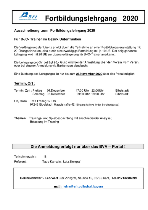 Am Wochenende fand in Salz ein Jugendtrainer Lehrgang des Bezirks Unterfranken statt. Bei hervorragenden Bedingungen fanden sich 14 Volleyball…