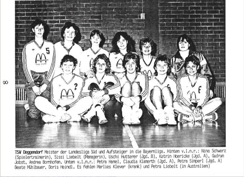 Nach 26 Jahren Jugendarbeit übergab sie die Jugend ihrer Tochter Nina, diente der Volleyballabteilung noch lange Jahre als Kassiererin und ermöglichte die Finanzierung hochklassiger Damen- und Herrenmannschaften.