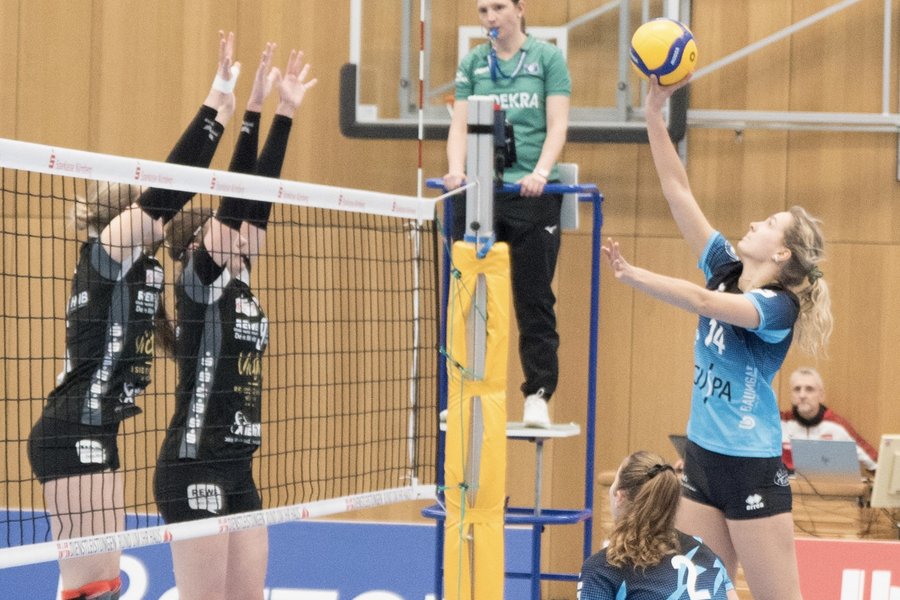 Wer jedoch glaubte, die Altdorferinnen würden sich davon einschüchtern lassen, sah sich im zweiten Satz eines Besseren belehrt. Mit deutlich mehr Energie und Selbstbewusstsein startete das Team in den Durchgang. Altdorf trug seine Angriffe nun konsequent vor und steigerte sich insbesondere in der Abwehr und Annahme. Durchgang zwei sicherten sich die Gäste schließlich mit 25:21. Im dritten Satz konnte die Gäste allerdings nicht an die Leistung aus Satz zwei anknüpfen. Vor allem die Wiesbadener Angriffe über die Mitte bereiteten der Altdorfer Defensive große Probleme. Trotz einer beherzten Aufholjagd am Ende des Satzes gelang es Altdorf nicht mehr, den Rückstand wettzumachen, Satz drei ging mit 25:21 an den VCW.